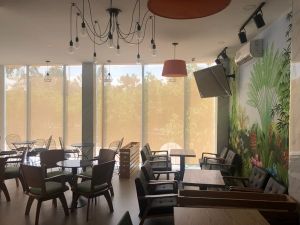 Rèm cuốn có khả năng cách nhiệt tạo ra bầu không gian thoáng mát cho quán.