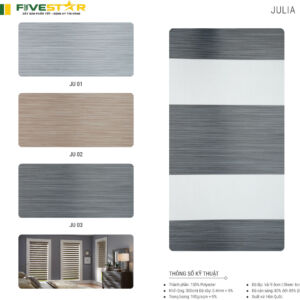 Bảng màu và thông số kỹ thuật rèm cầu vồng FIVESTAR mã Julia