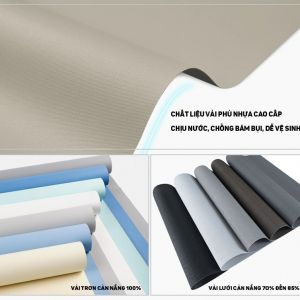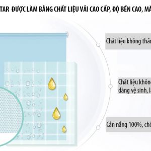 - Rèm cuốn FIVESTAR được làm bằng chất liệu vải phủ nhựa Polyester cao cấp có khả năng cản sáng và cản nhiệt cực tốt. Chất liệu này cũng khó bám bụi và dễ vệ sinh trong quá trình sử dụng.