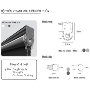 - Hệ thống đầu kéo rèm cuốn FIVESTAR làm từ nhựa cao cấp, còn dây kéo thì thường là dây hạt hoặc dây dù. Hệ thống đầu kéo FIVESTAR hoạt động trơn tru, bền bỉ, giúp bộ rèm được kéo lên hạ xuống dễ dàng, linh hoạt.