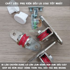 ⇒ Các phụ kiện đi kèm luôn bền đẹp với thời gian dù bị phơi nắng, phơi mưa. Dây dù để kéo chúng tôi sử dụng loại dây dù Hàn Quốc. Ròng rọc kéo là loại ròng rọc chuyên dụng cho động cơ rèm (không phải loại mấy nghìn mua ngoài tiệm sắt)